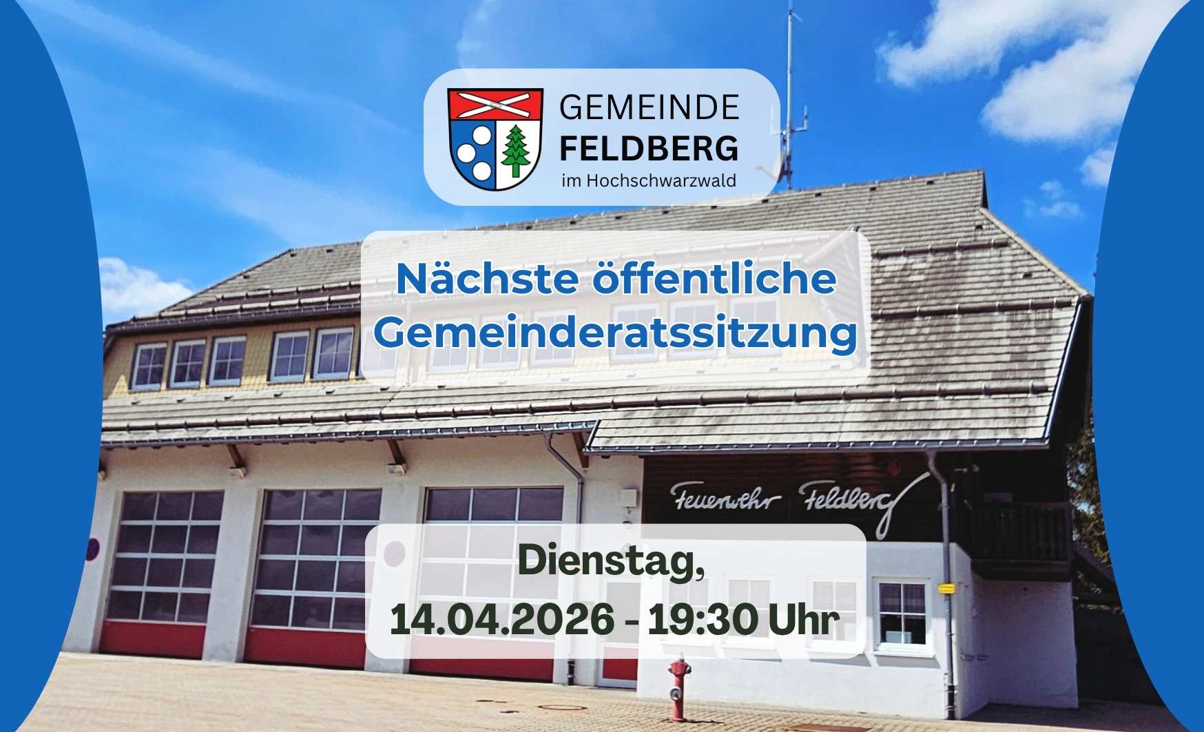 am Dienstag, den 14.04.2026 um 19:30Uhr im Feuerwehrhaus, Sitzungssaal, Dreiseenbahnweg 2, 79868 Feldberg Tagesordnung: 1 Bekanntgabe der Beschlüsse aus der letzten nichtöffentlichen Gemeinderatssitzung 2 Wünsche und Anträge aus der Bevölkerung…