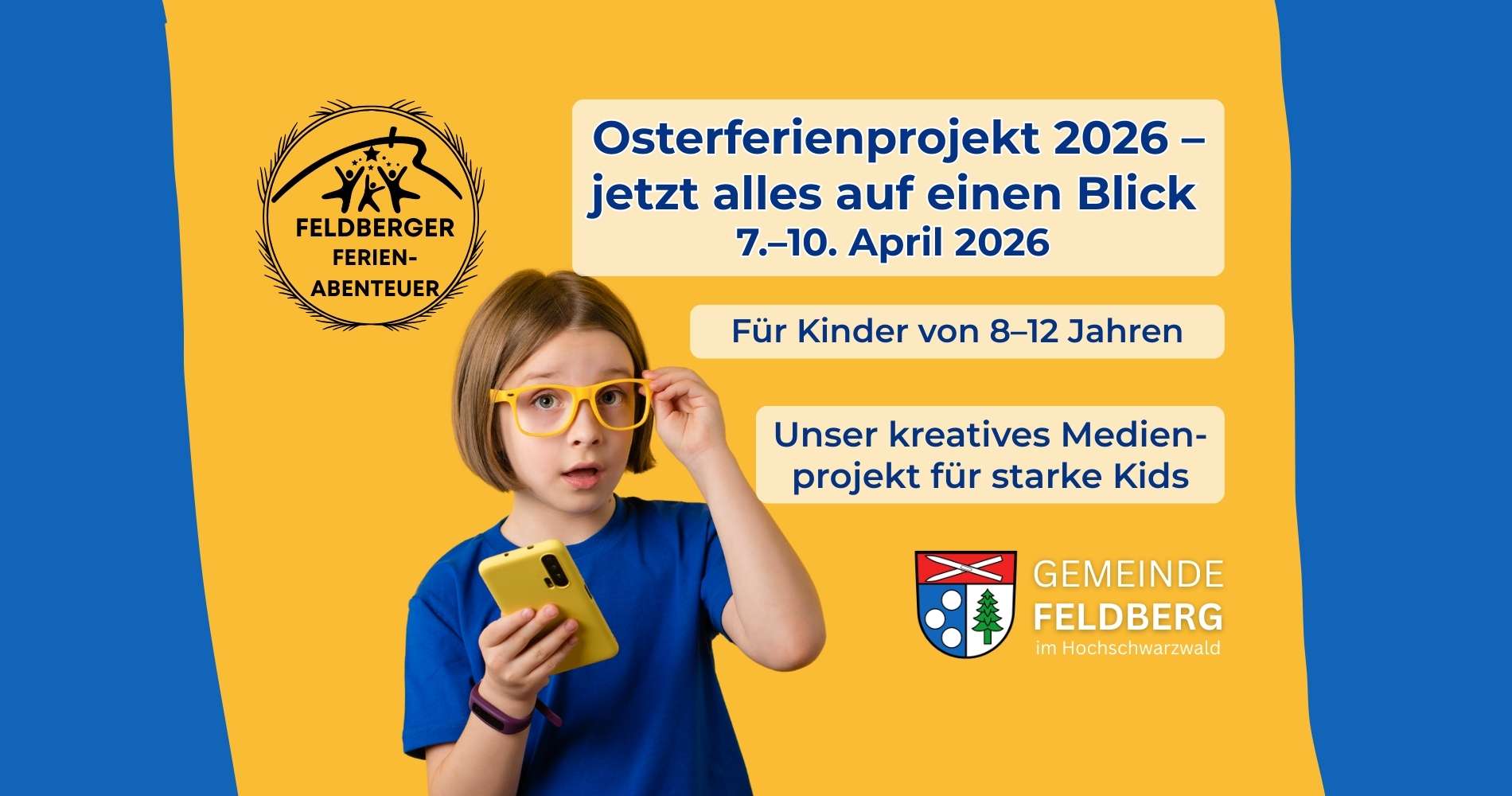 🌟 Feldberger Ferienabenteuer 2026 In den Osterferien erwartet Kinder von 8 bis 12 Jahren ein besonderes Erlebnis: Vom 7. bis 10. April 2026 verwandelt sich die Feldberghalle in einen kreativen…