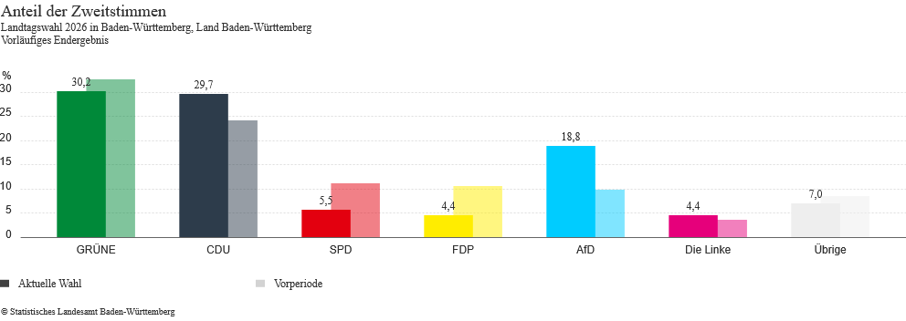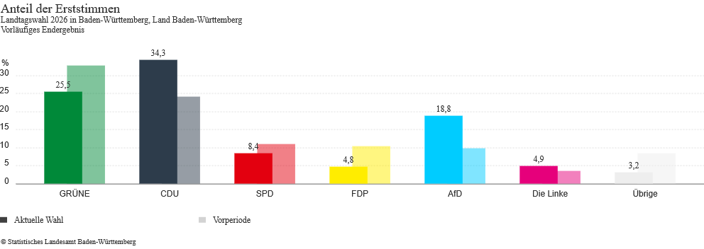 Auch auf Landesebene liegt das vorläufige amtliche Endergebnis vor, das die künftige Zusammensetzung des Landtags in Stuttgart bestimmt: