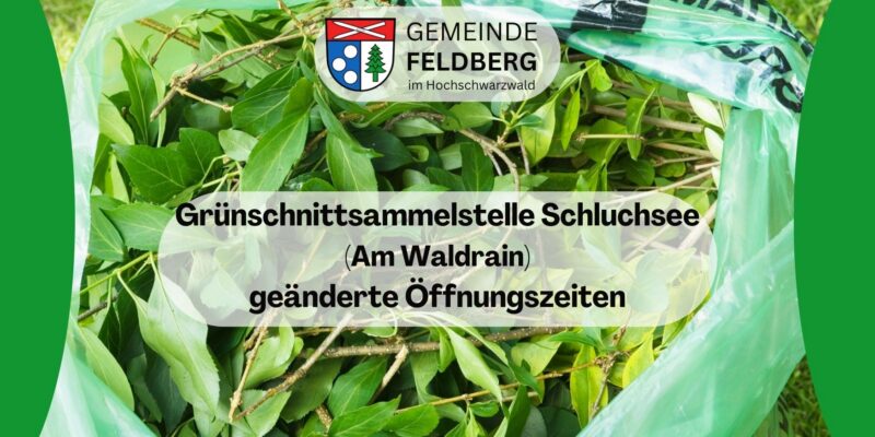 Sehr geehrte Bürgerinnen und Bürger, bitte beachten Sie, dass sich die Öffnungszeiten der Grünschnittsammelstelle Schluchsee ab Montag, 6. Oktober 2025 (KW 41) ändern. Bisherige Öffnungszeiten bis einschließlich 6. Oktober 2025:…