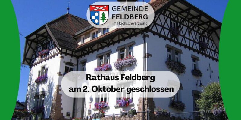 Am Donnerstag, 2. Oktober 2025, bleibt das Rathaus Feldberg ganztägig für den Publikumsverkehr geschlossen. Hintergrund ist eine interne Besprechung des gesamten Teams, die für die Organisation und Abstimmung wichtiger Themen…
