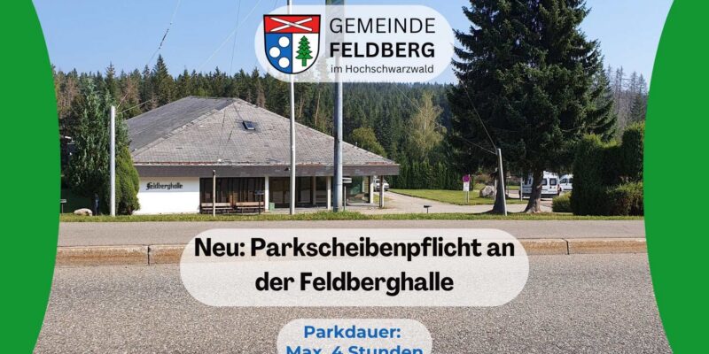 Sehr geehrte Bürgerinnen und Bürger, die Gemeindeverwaltung informiert über eine neue Regelung auf dem Parkplatz an der Feldberghalle: Ab sofort gilt auf allen Stellflächen die Parkscheibenpflicht (Höchstparkdauer 4 Stunden). Diese…